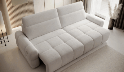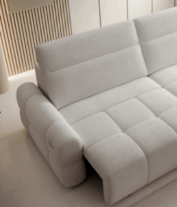 Grâce à une commande discrète, le canapé se transforme en un espace de détente complet, parfait pour lire, se relaxer ou simplement profiter du moment.