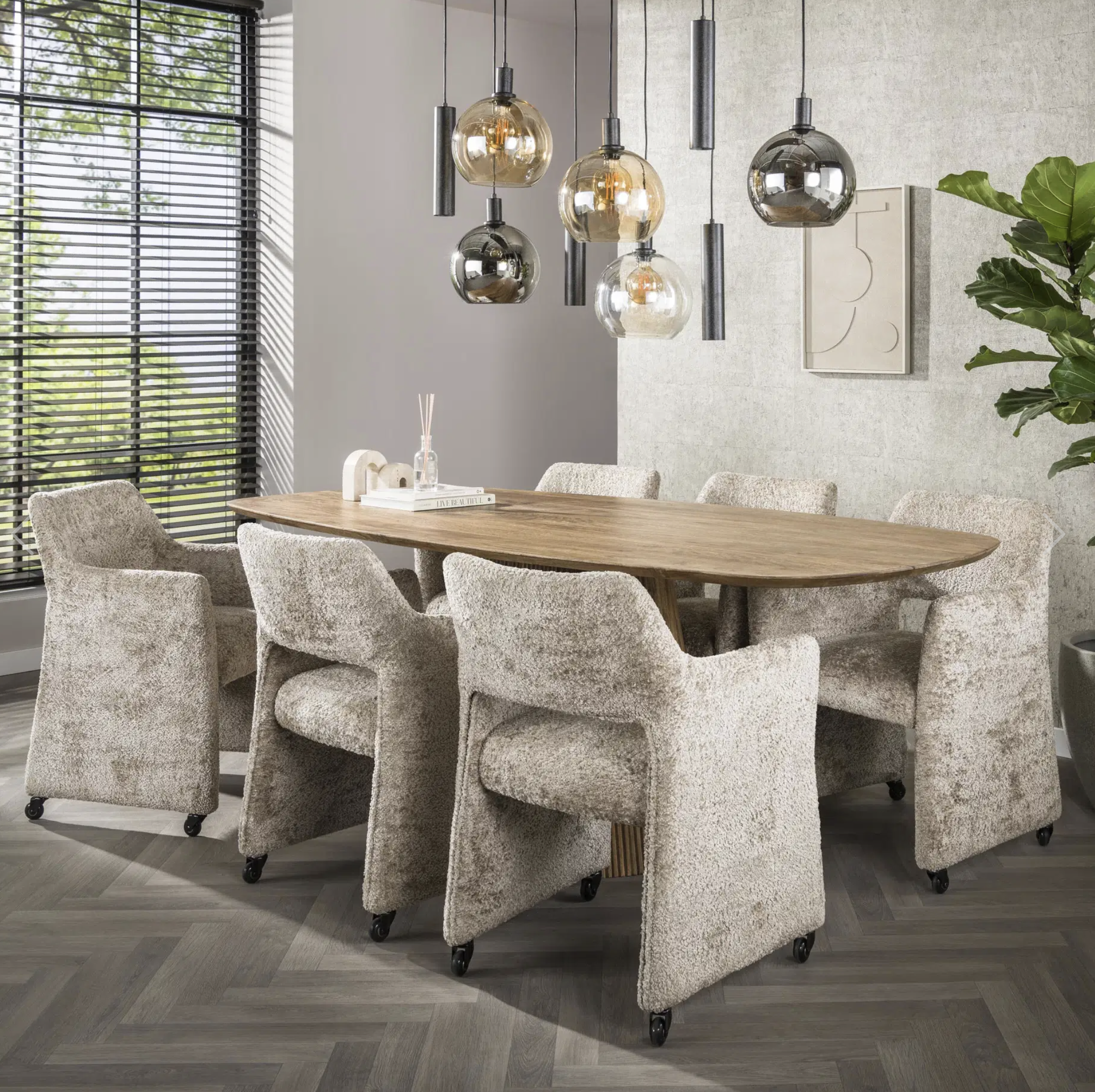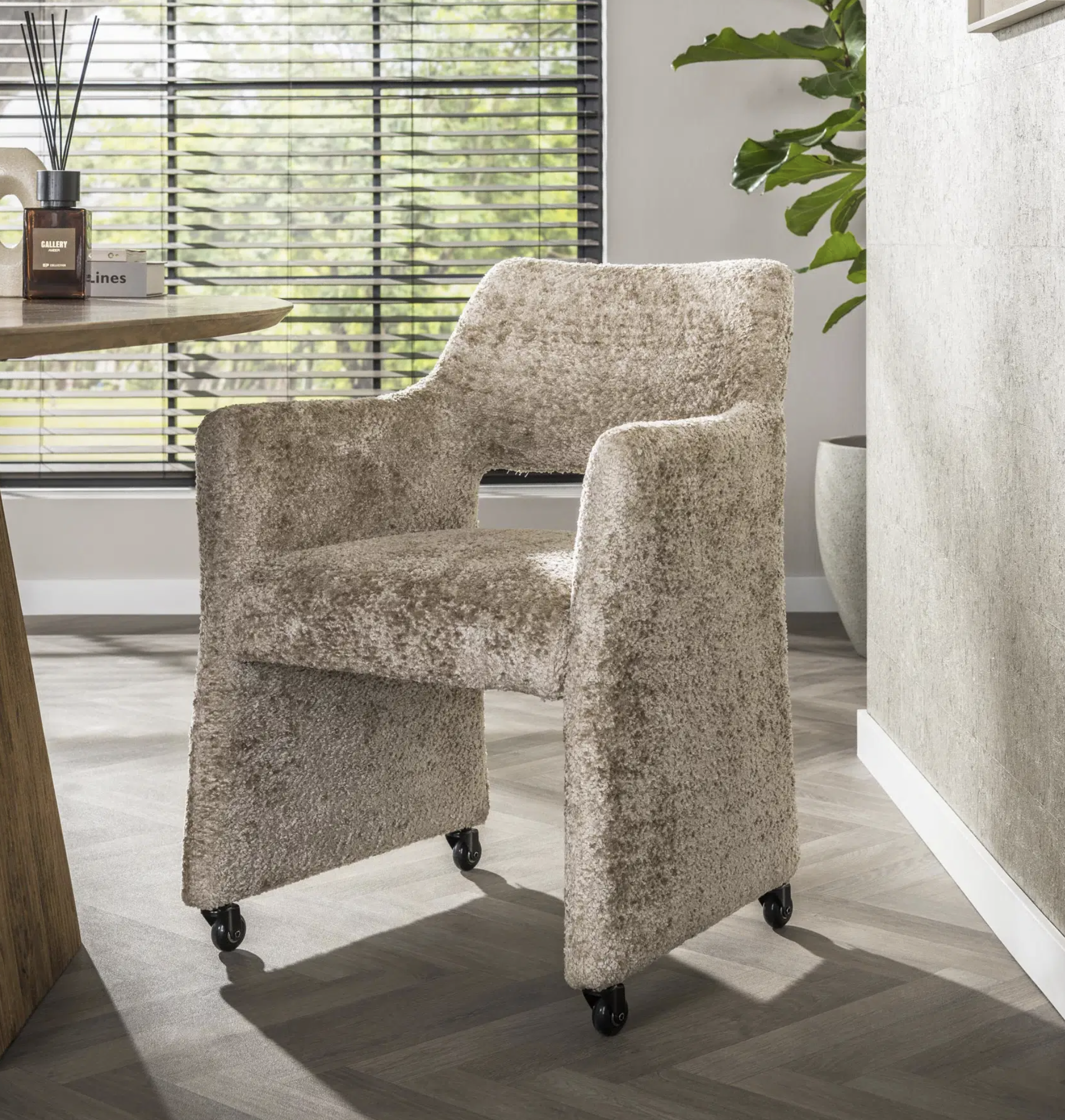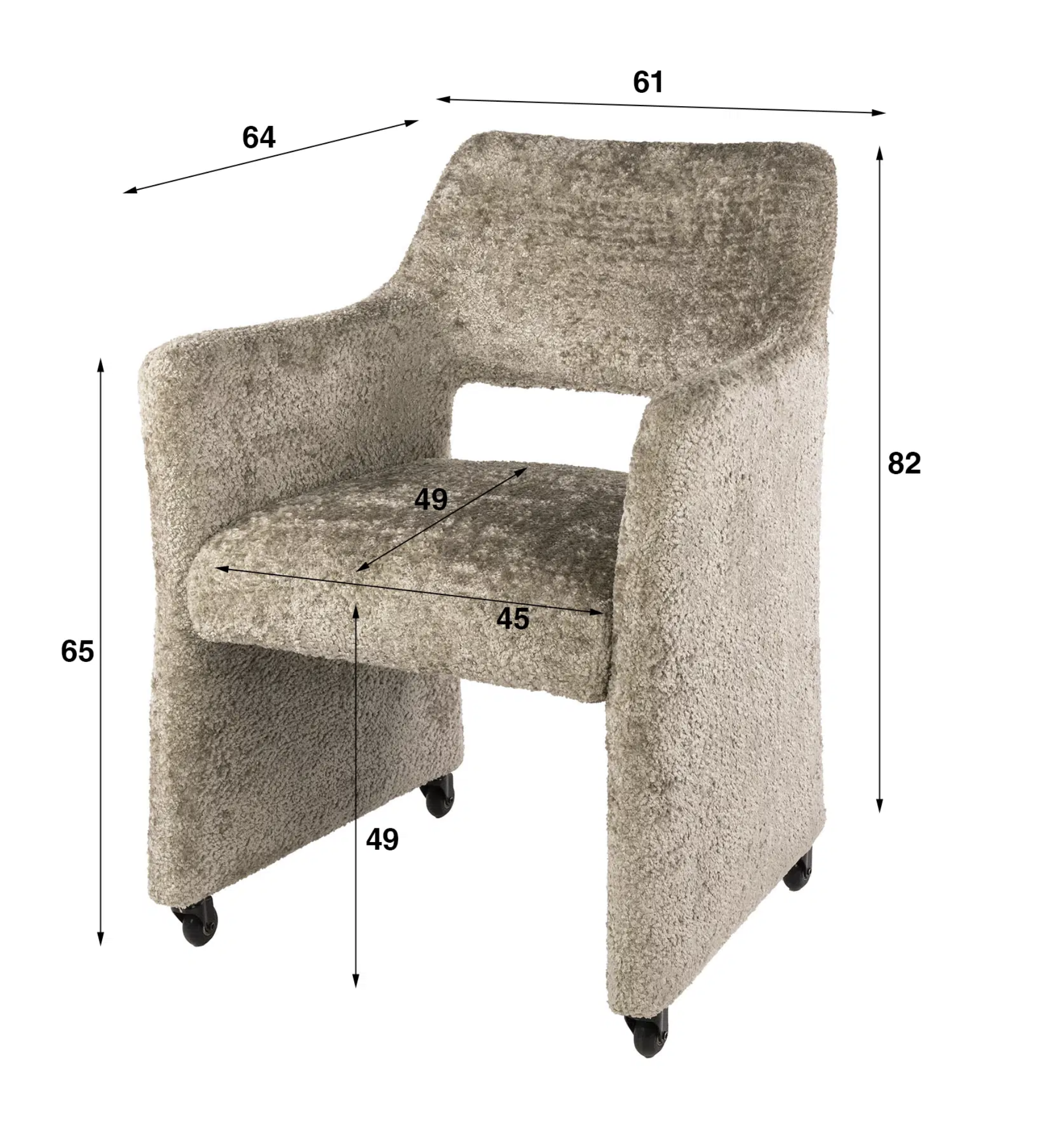Ses accoudoirs qui descendent jusqu’au sol lui donnent une silhouette élégante, et l’ouverture dans le dossier apporte une sensation de légèreté.