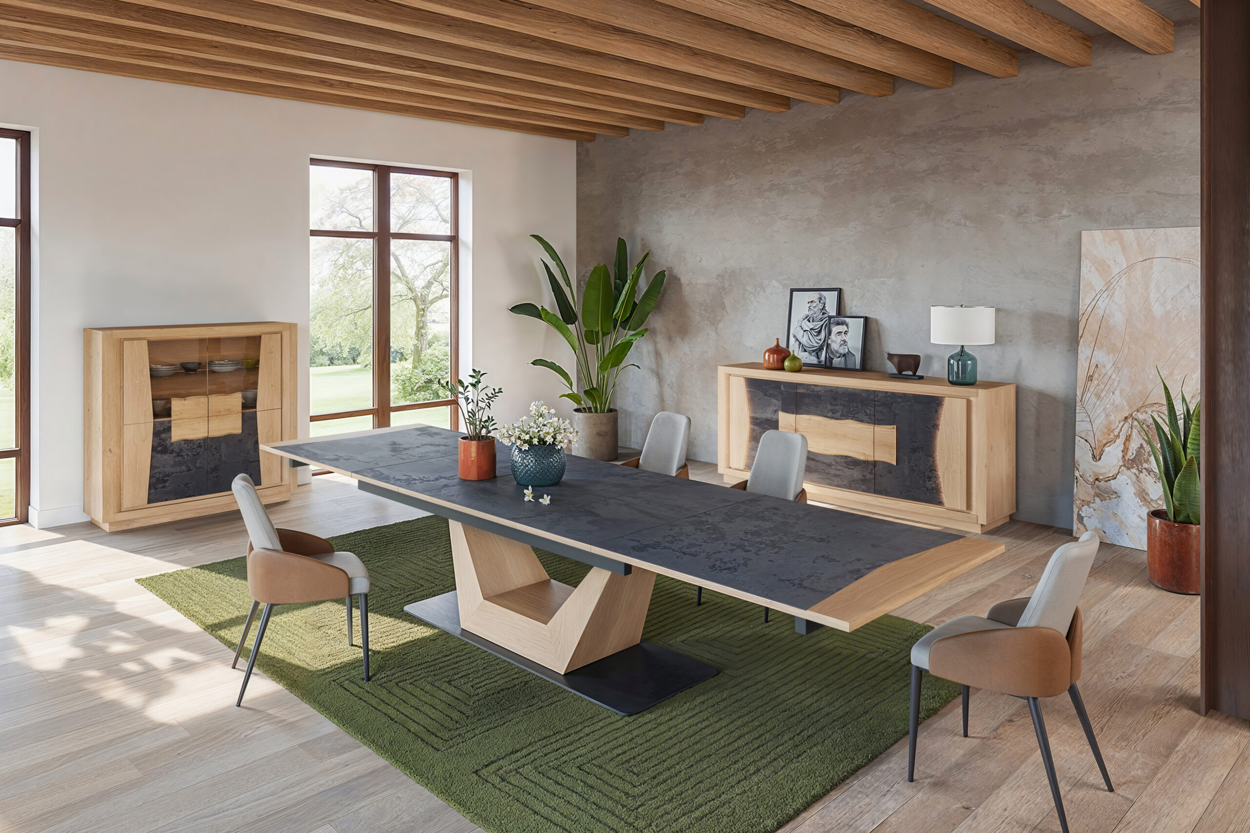 Plateau de table avec allonges papillons intégrées en céramique